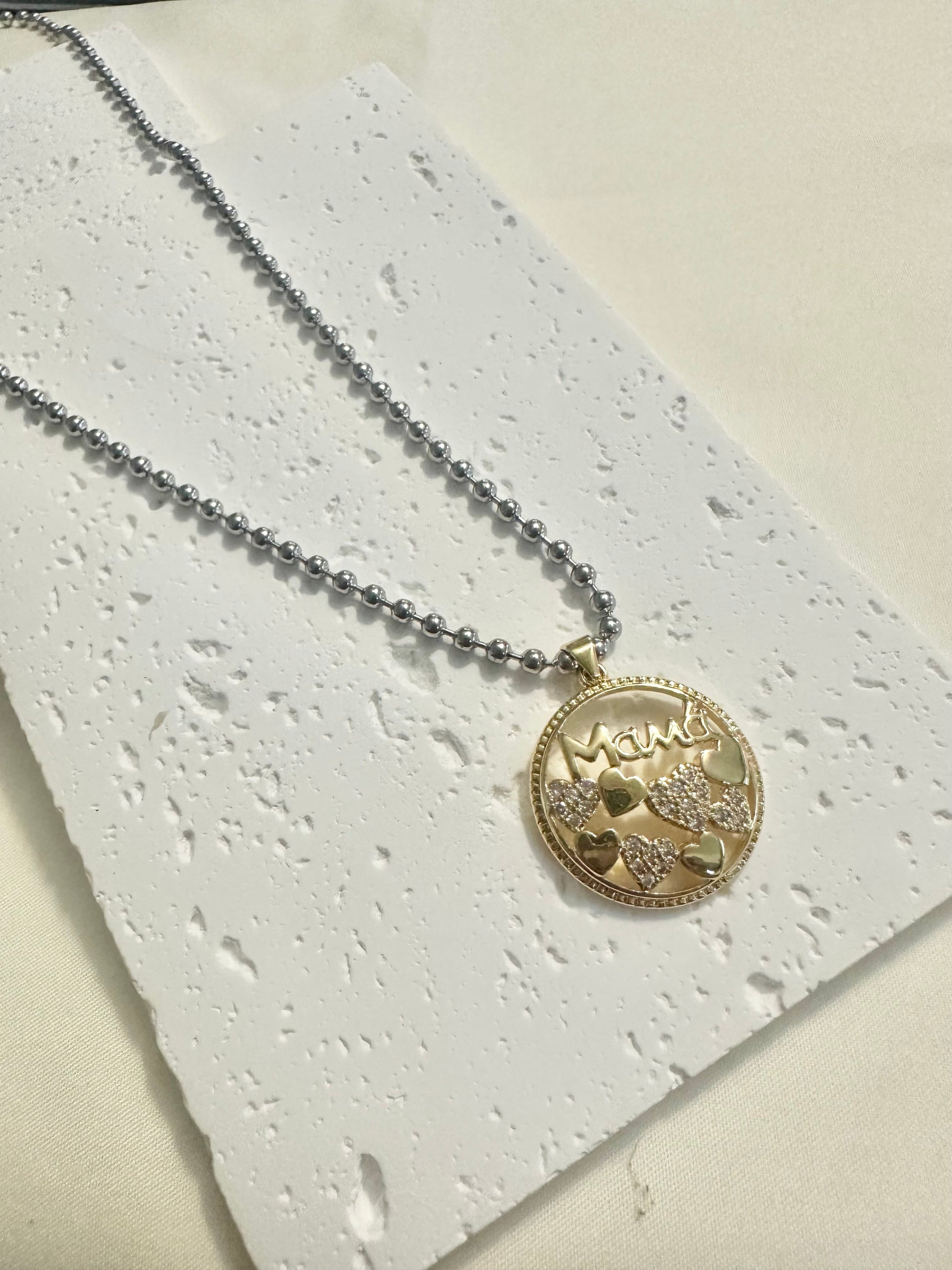 Cadena de acero inoxidable en color plata, acompañada de un charm enchapado en oro, diseñado para hacerla sentir especial cada día.