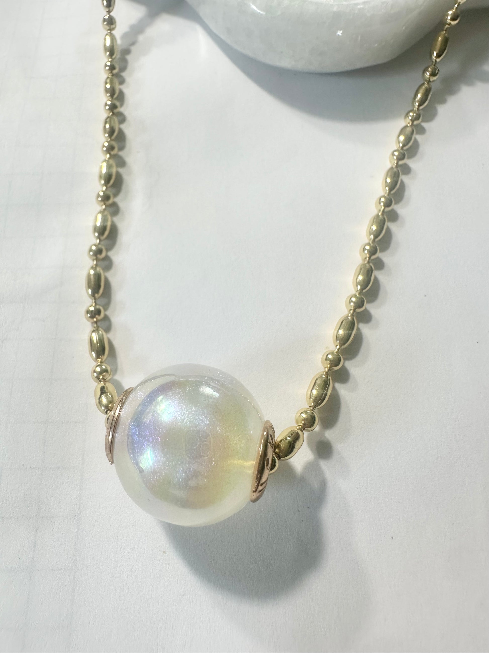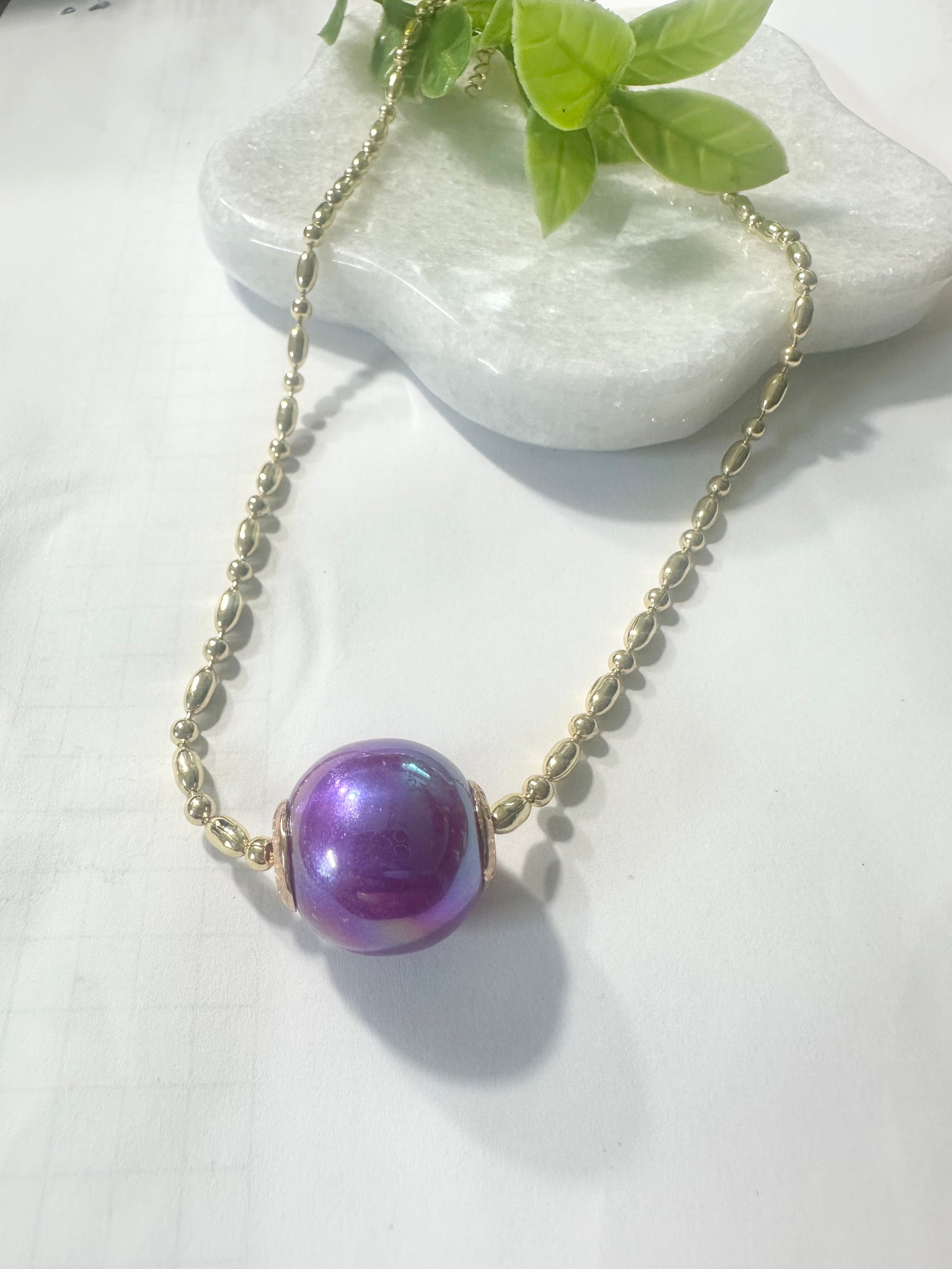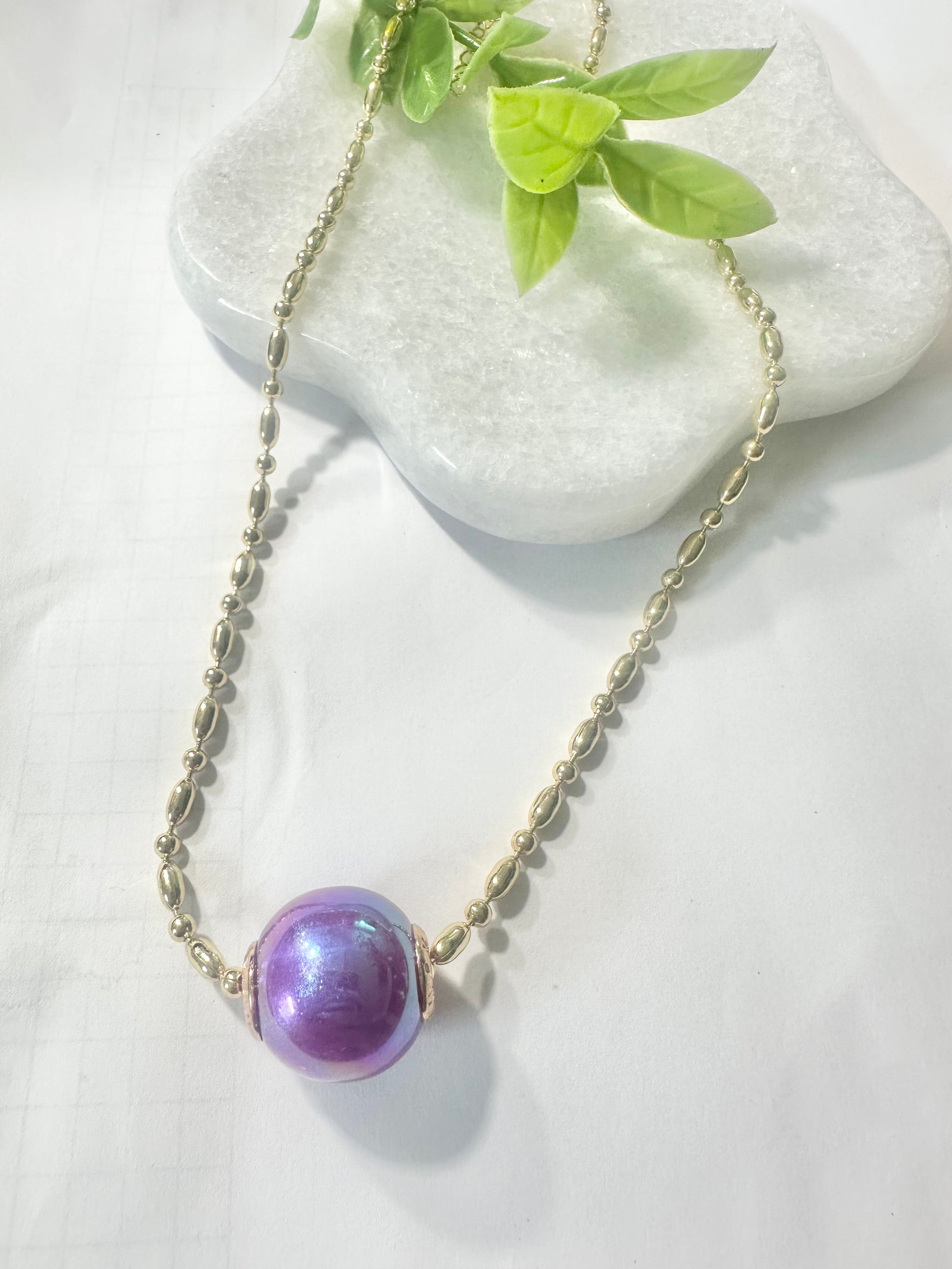 This delicate gold-plated chain comes with an elegant acrylic ball pendant , adding a modern and sophisticated touch. Its minimalist design is perfect for any occasion, combining luxury and simplicity in a single piece.