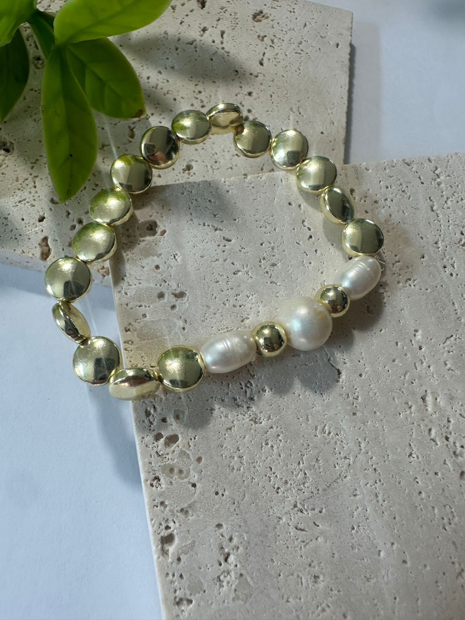 Discover the perfect combination of elegance and comfort with this stretch bracelet, crafted with delicate freshwater pearls 🤍 and gold-plated spacers ✨. Its flexible design allows for easy wear, while the gold-tone details add a touch of luxury. Ideal for women looking for a sophisticated yet practical look, this bracelet is the perfect accessory for any occasion.