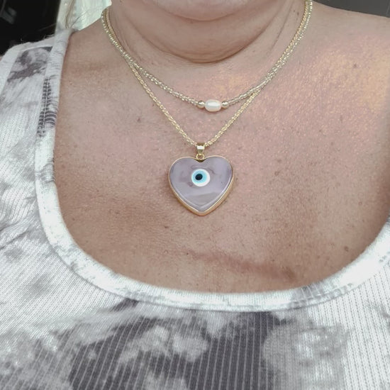 Gold-plated chain with a heart pendant with an eye in the middle. They come in different colors, and also without the eye.