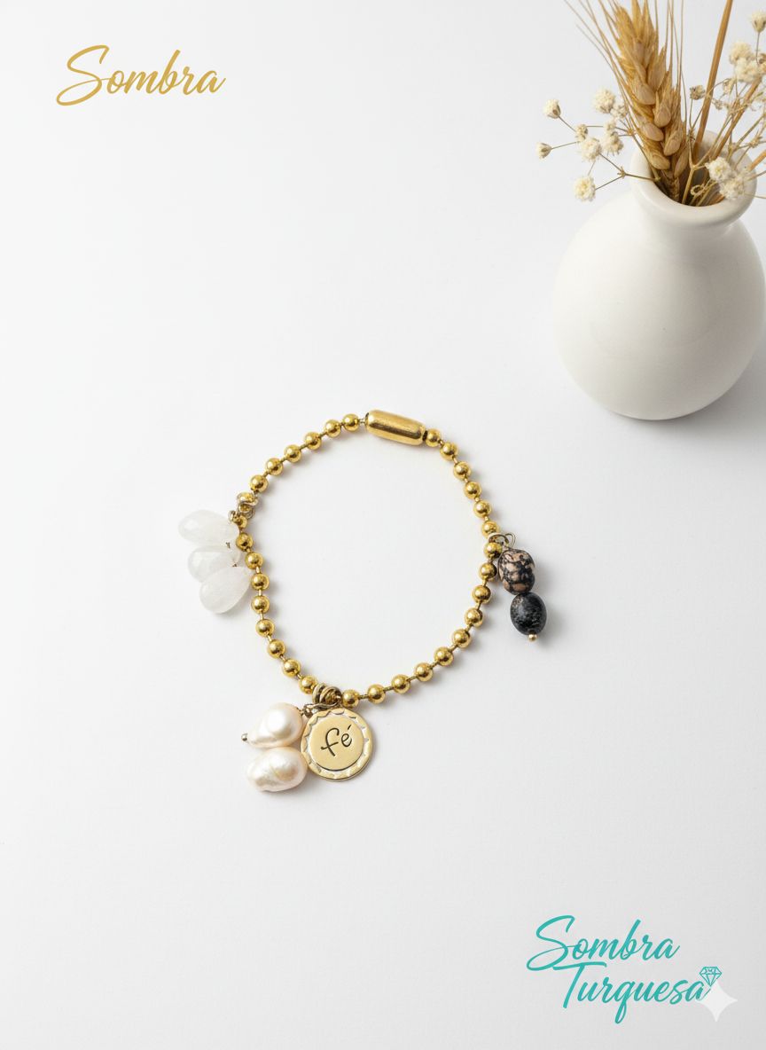 The combination of rhodonite, moonstone, and freshwater pearl brings serenity, clarity, and purpose, while the FAITH charm completes its meaning: trusting your process, one step at a time ✨